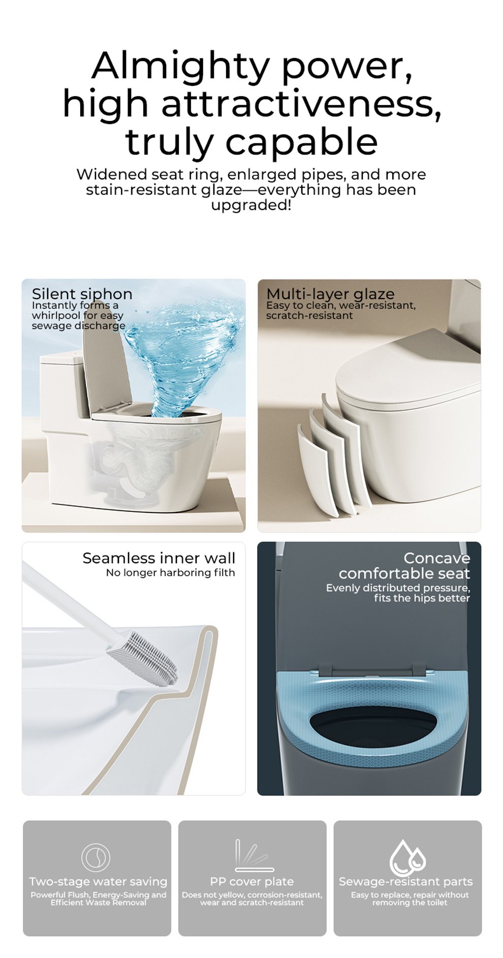 3. 36cm low seat height, slightly squat style for better convenience