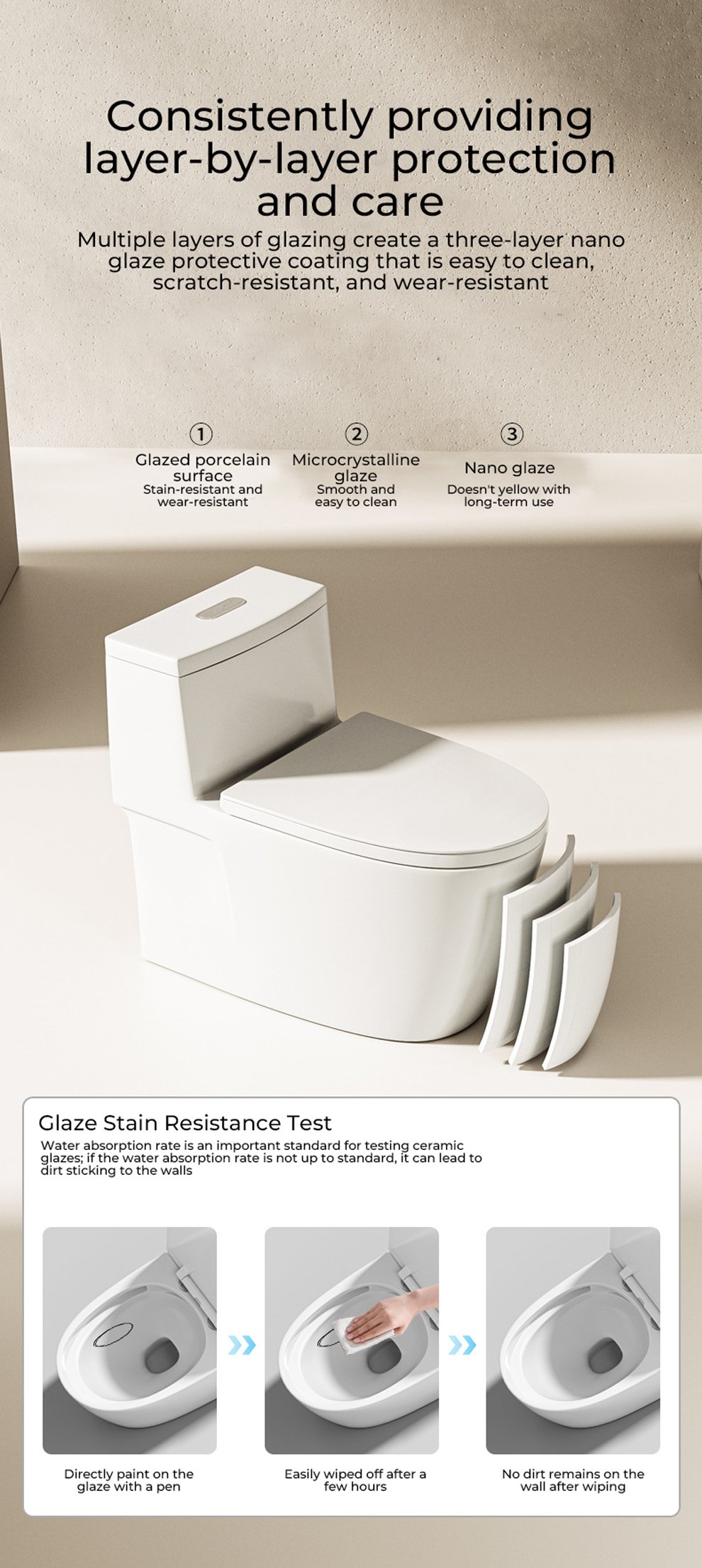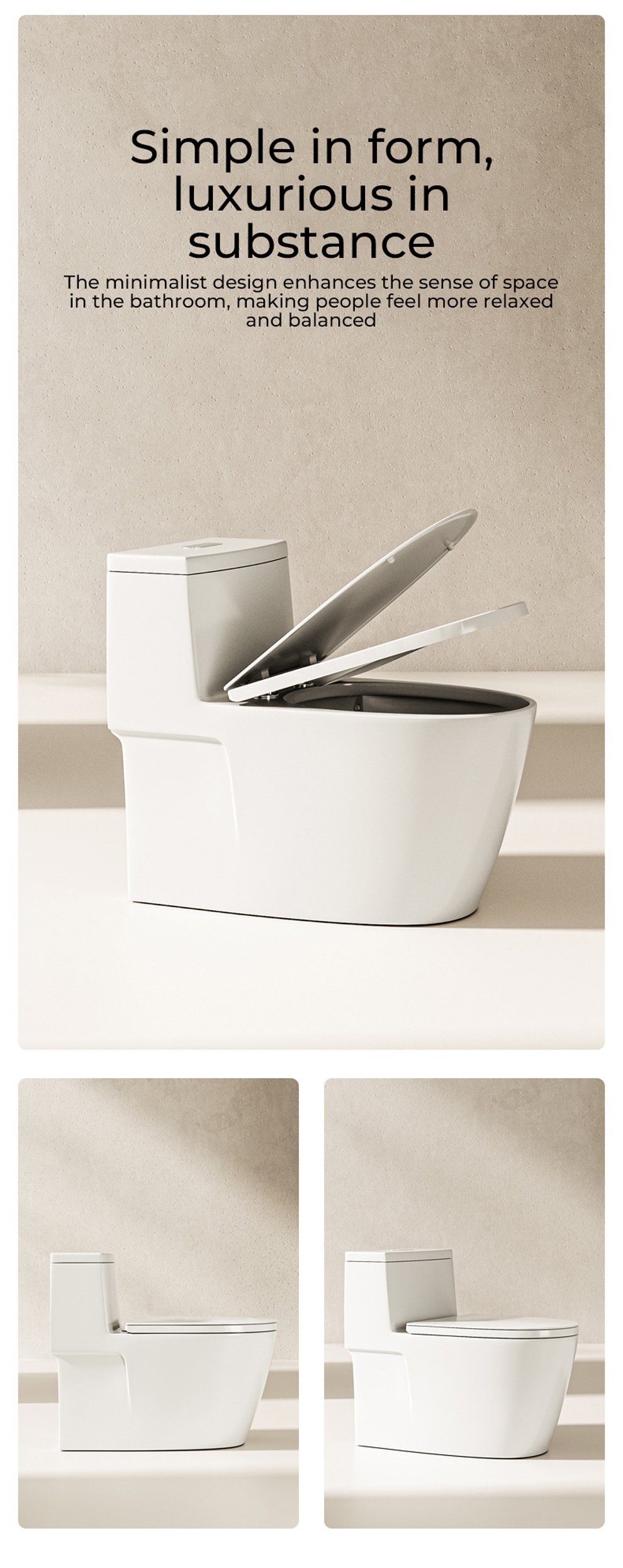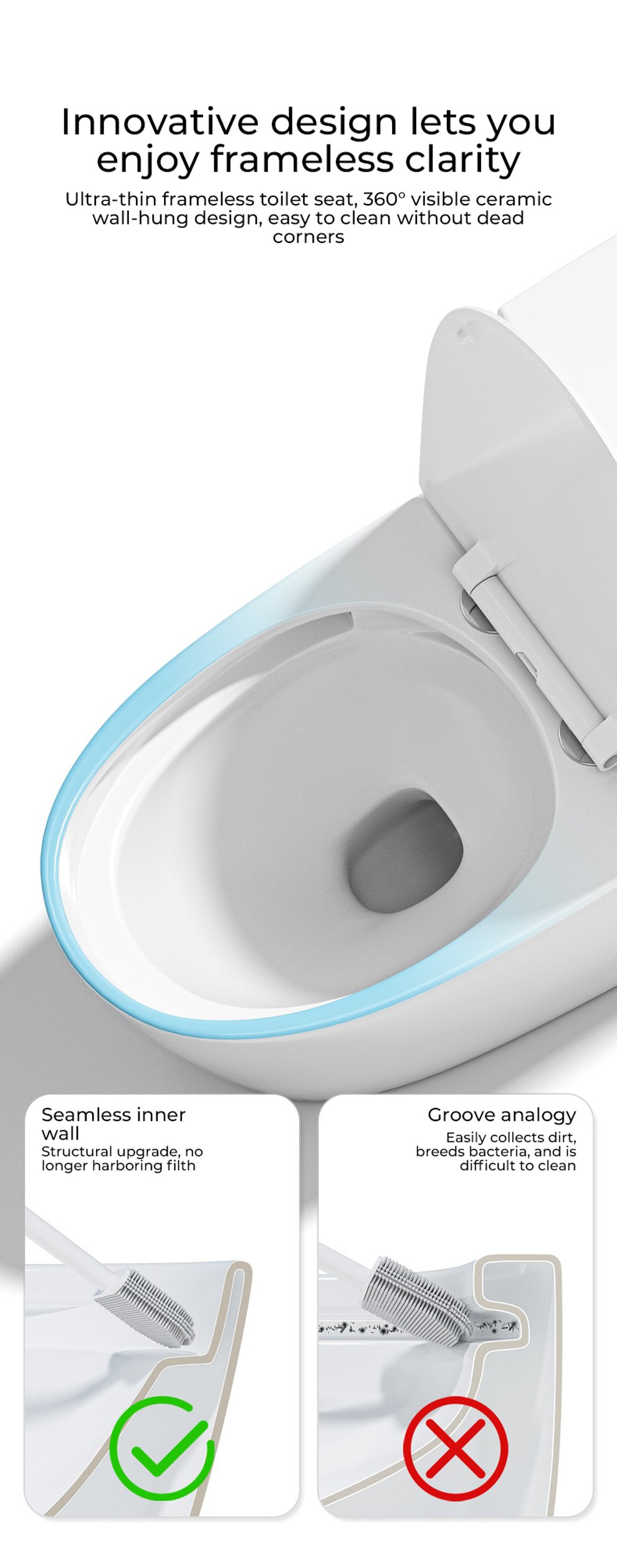 1. Ultra thin border design, visual flushing, compared to the lip less design of the seat circle, the seat circle is larger, making it less likely for men to urinate and splash.