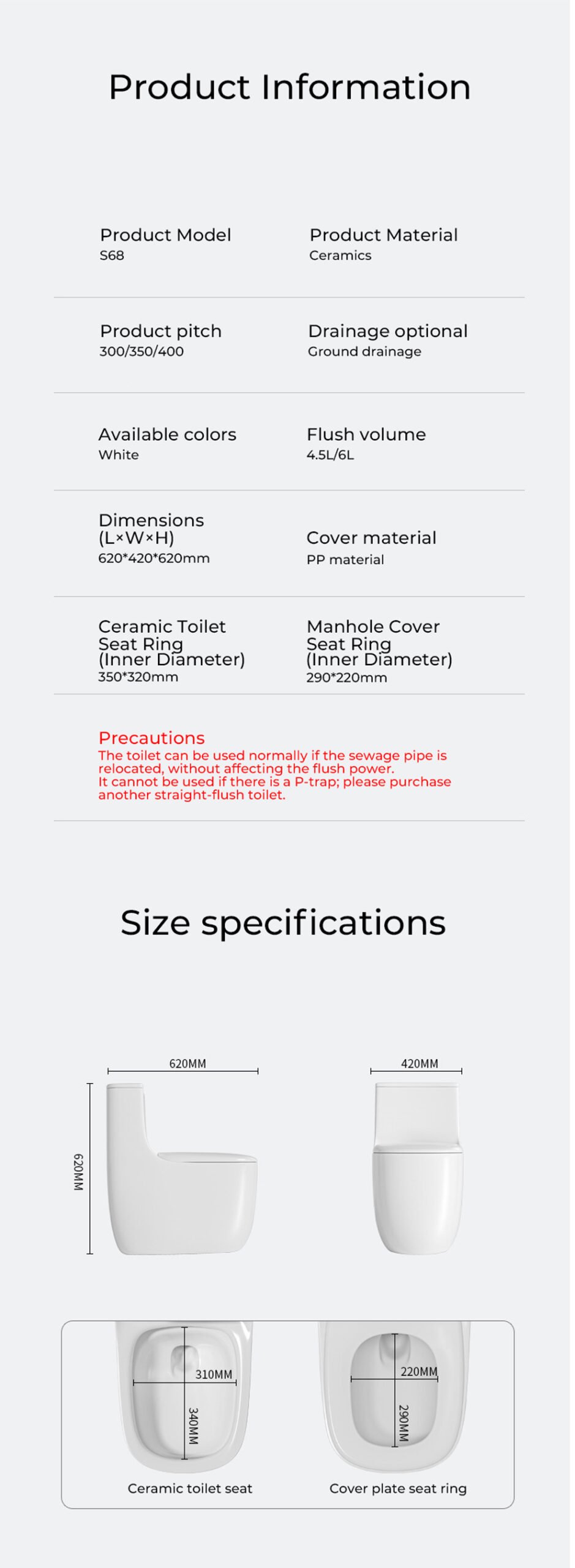 Z2 large toilet bowl 68CM