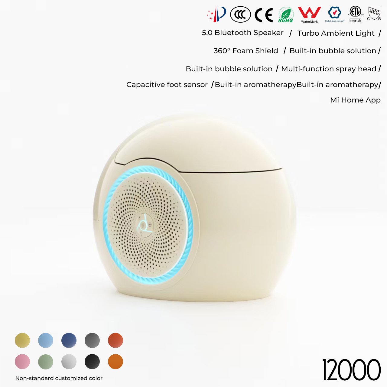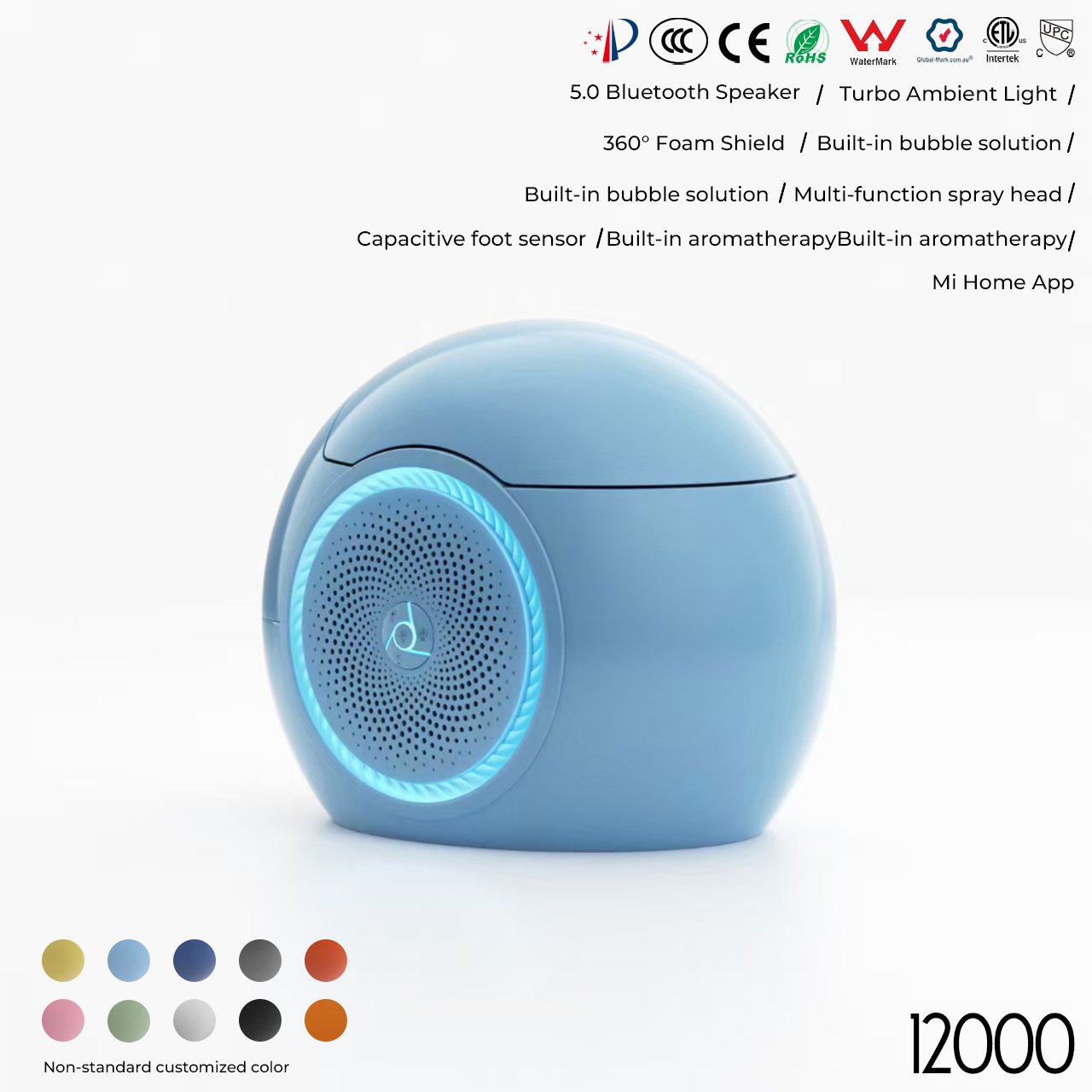 Capacitive foot sensor/turbo ambient lighting/four-season temperature sensing/built-in aromatherapy/built-in bubble