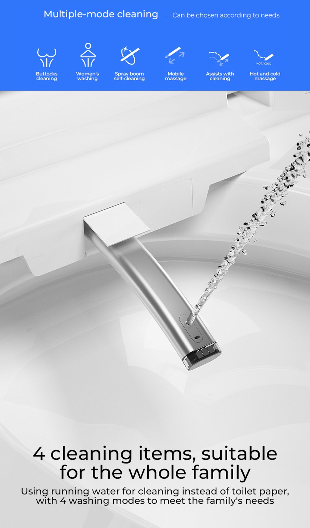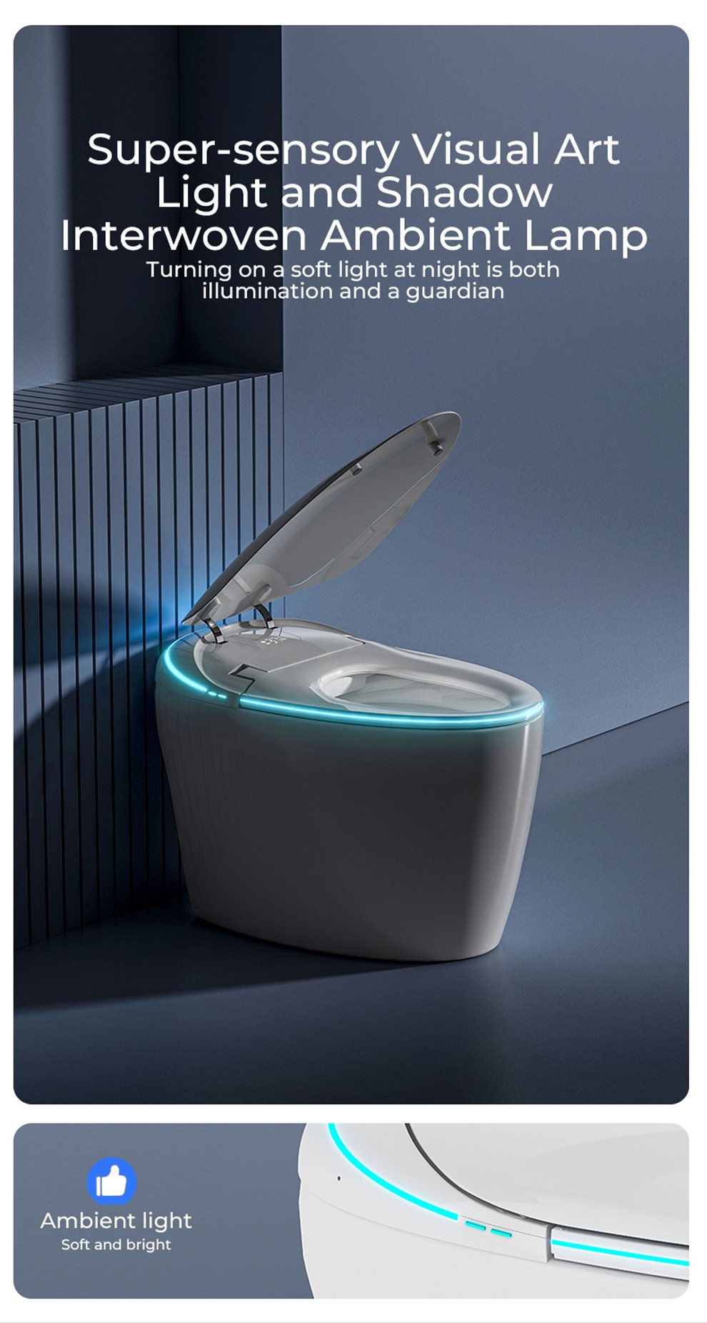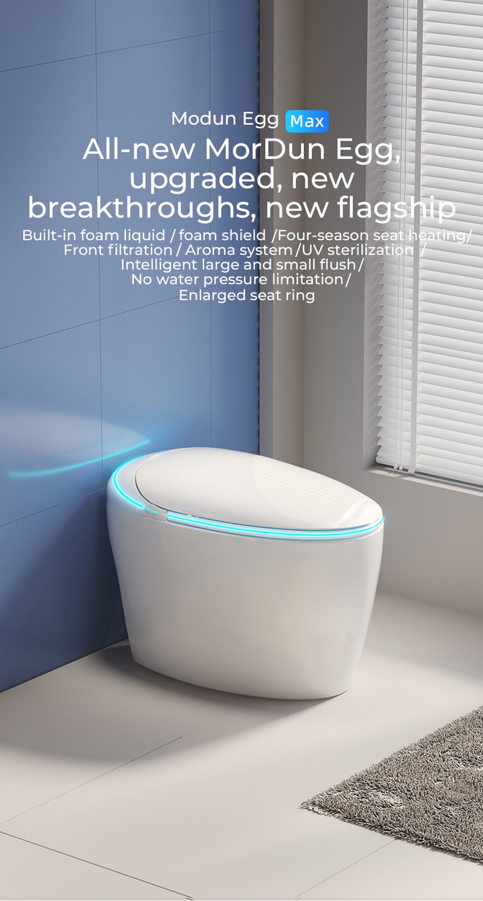 Selling points: UV sterilization/four-season temperature sensing system/built-in bubble/built-in aromatherapy/flowing light atmosphere taillights/size and flush recognition/front filtration