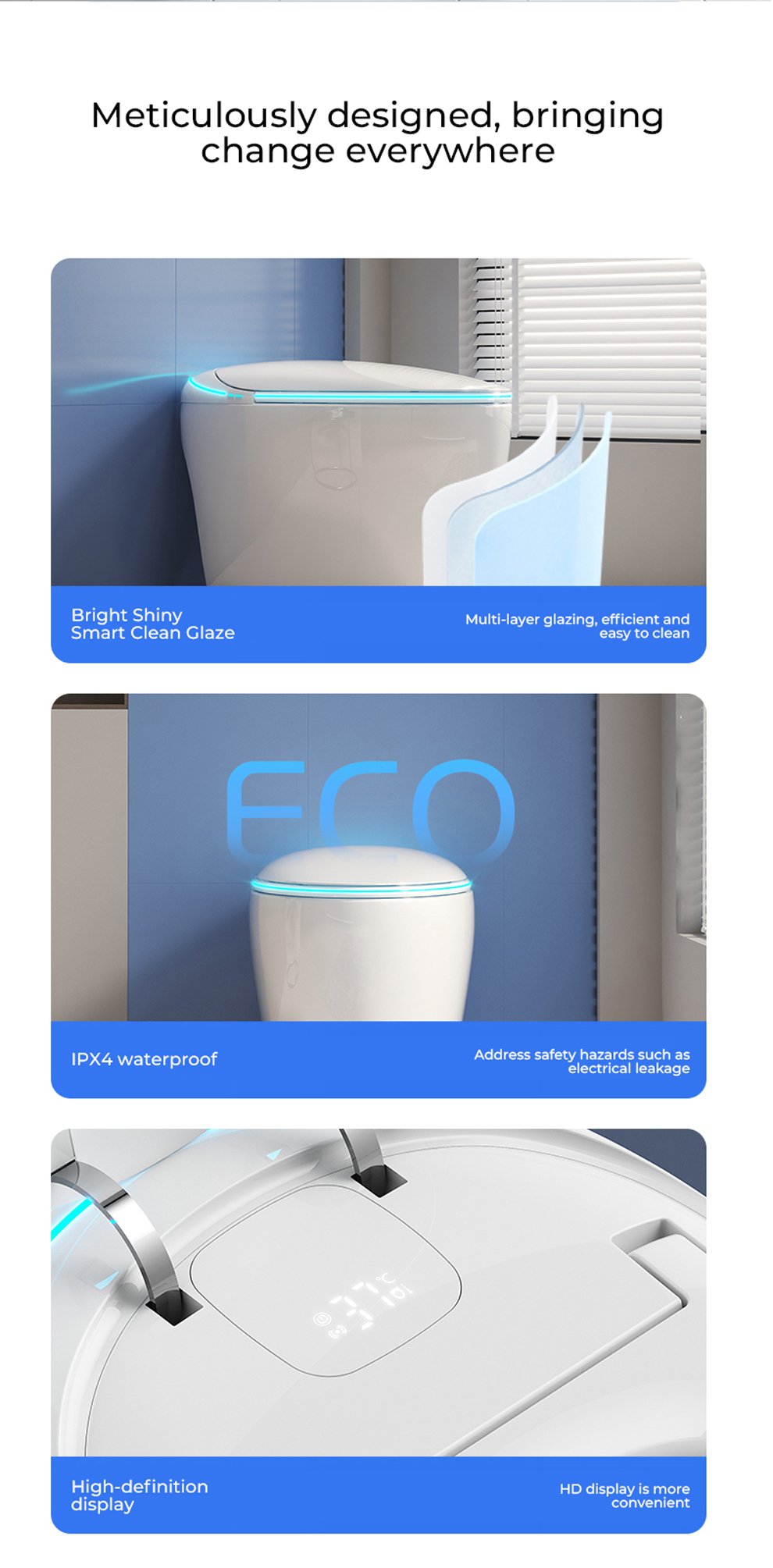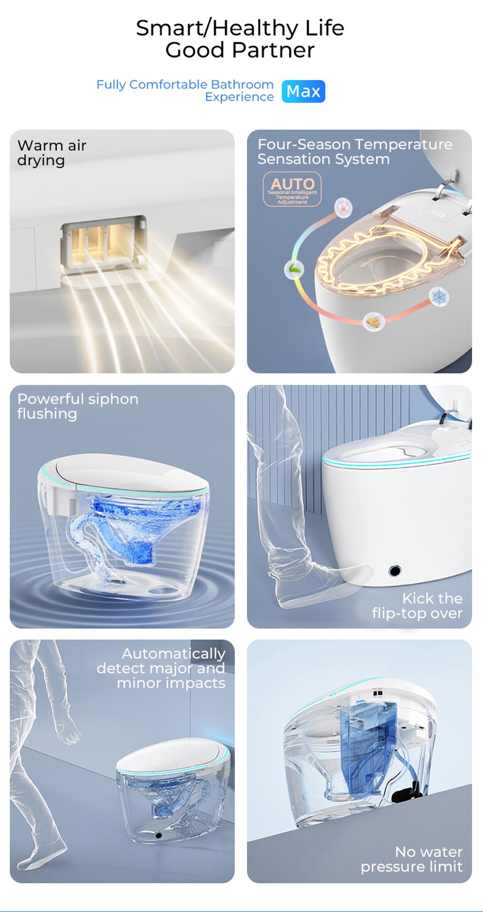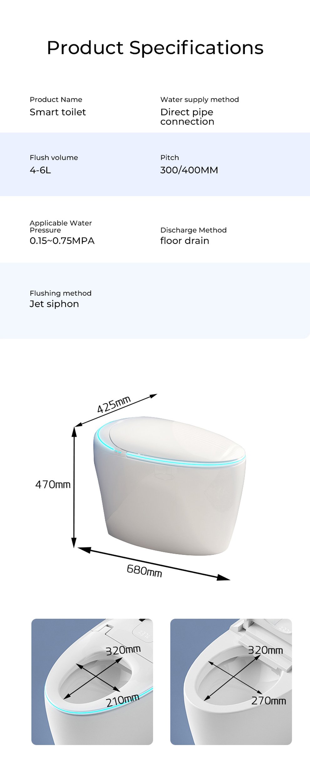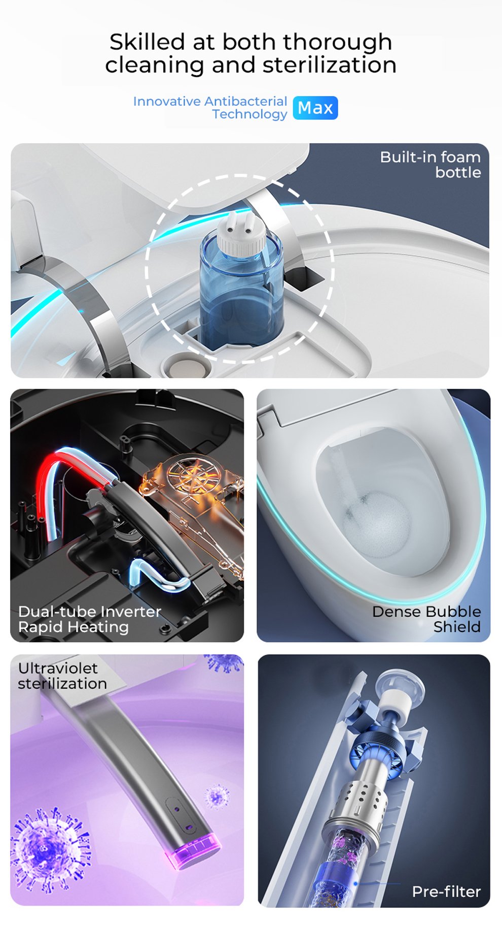 Selling points: UV sterilization/four-season temperature sensing system/built-in bubble/built-in aromatherapy/flowing light atmosphere taillights/size and flush recognition/front filtration
