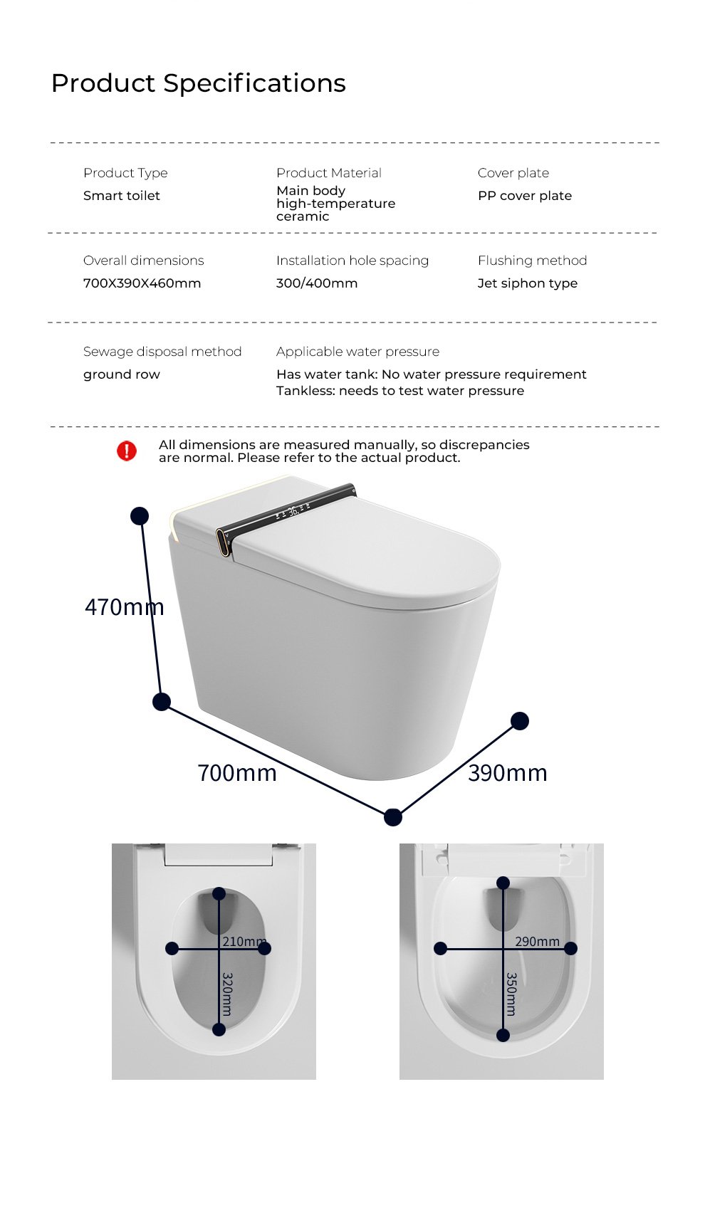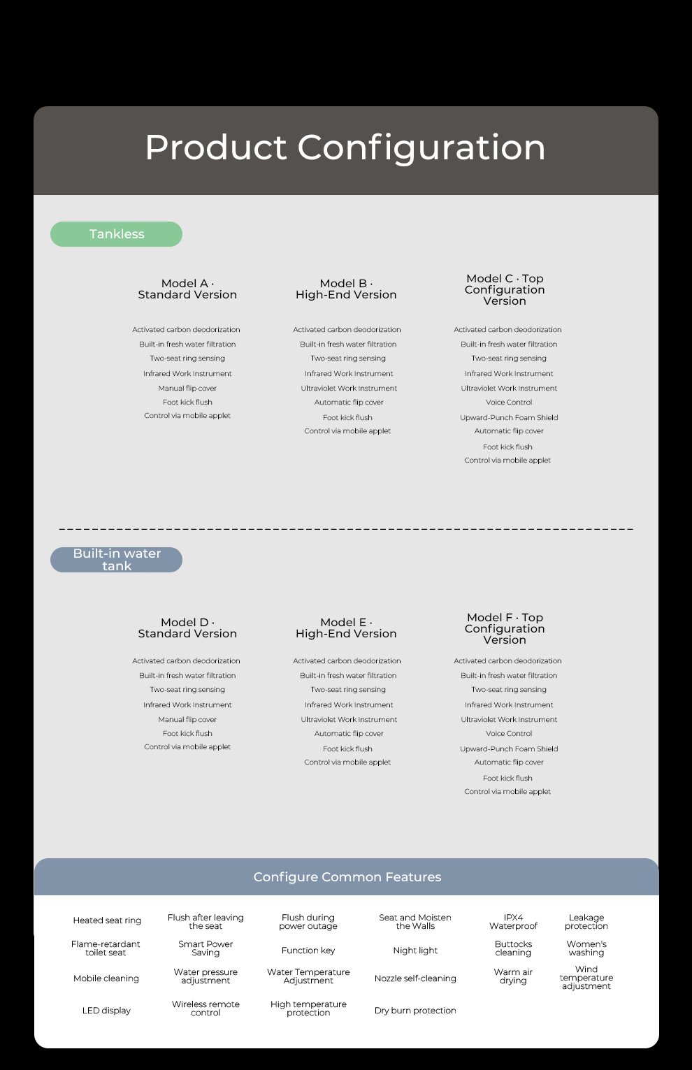 All models come standard with a water tank without water pressure restrictions