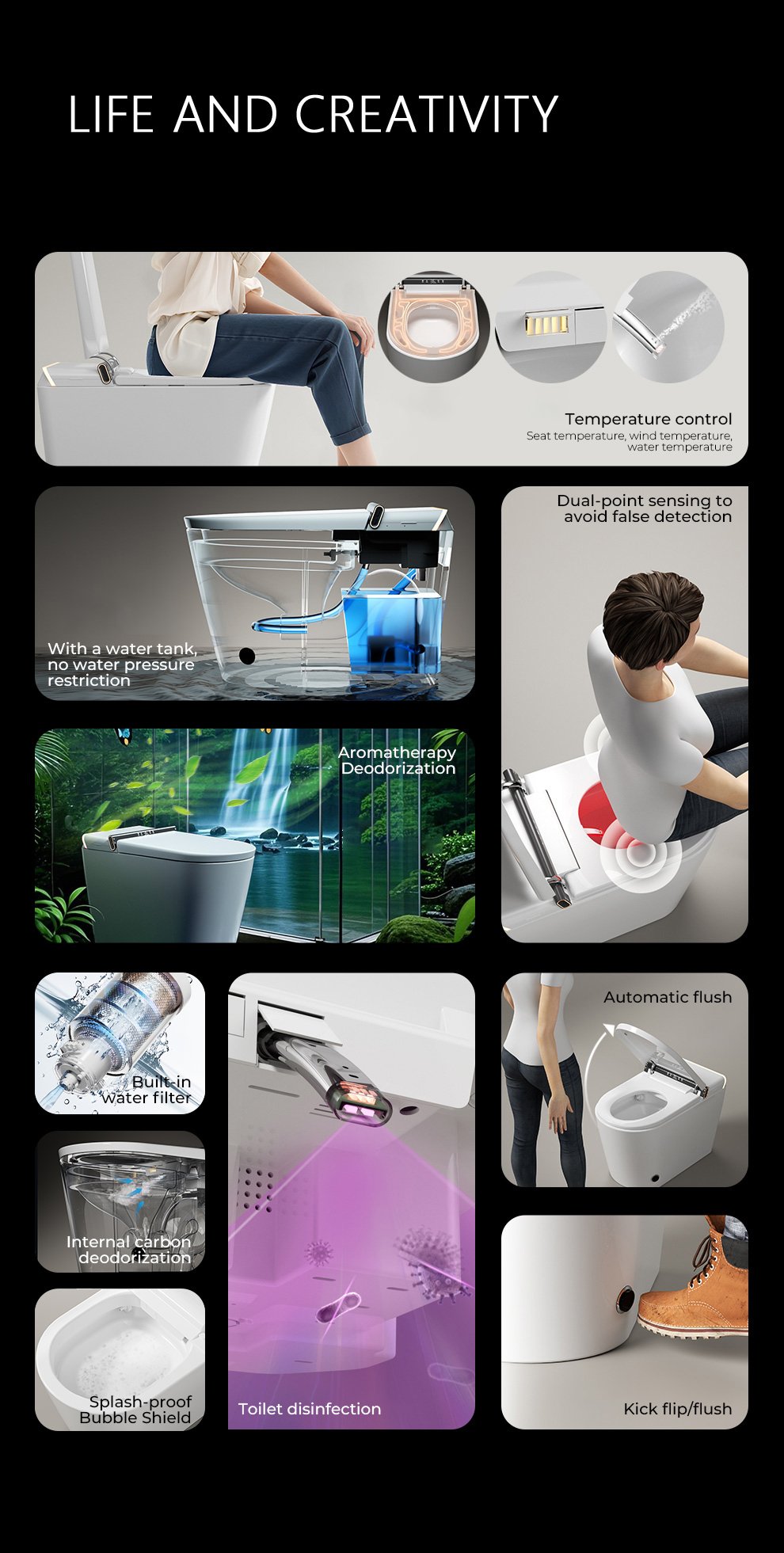 Rotating bubbles / UV sterilization / Ambient taillights /