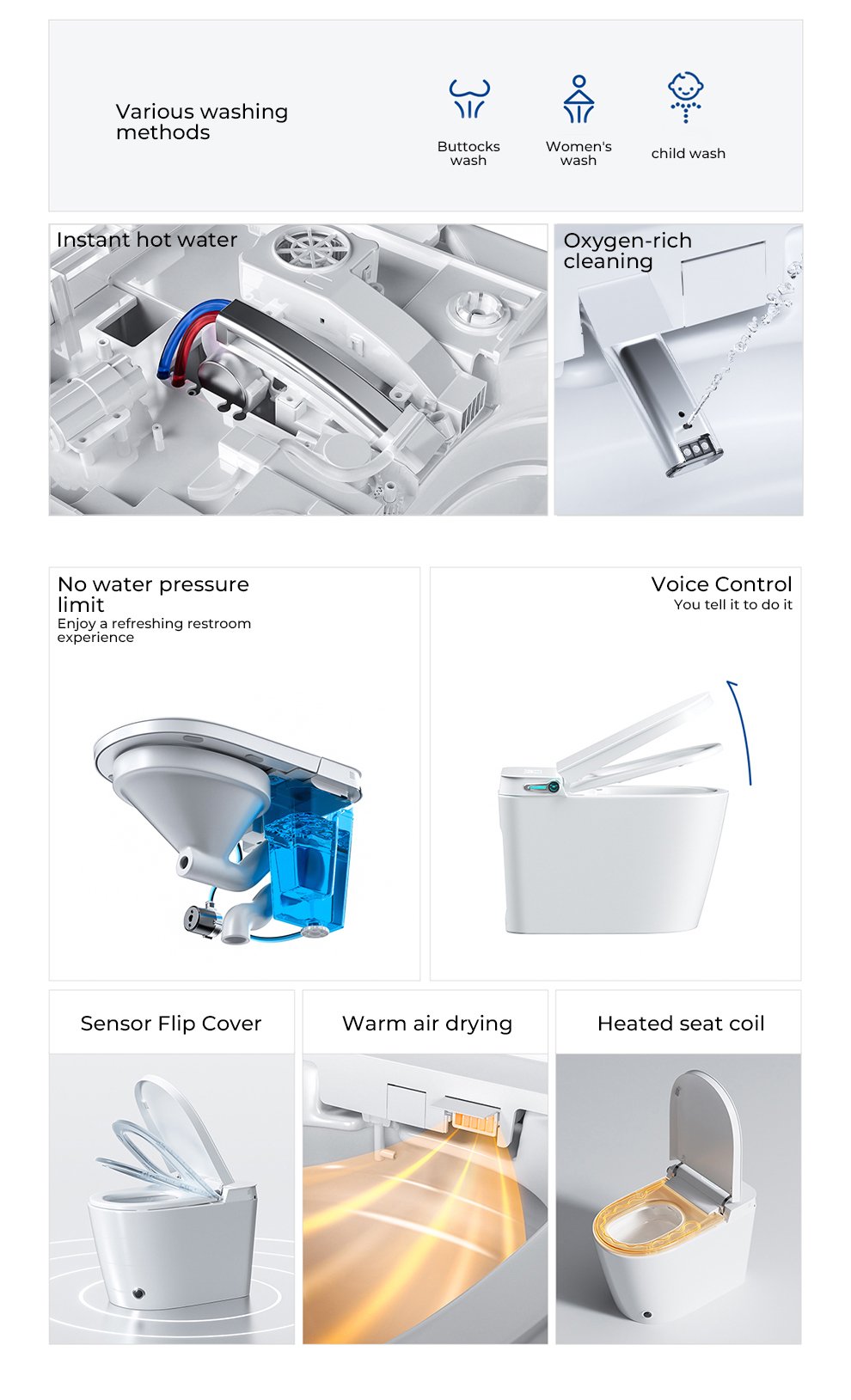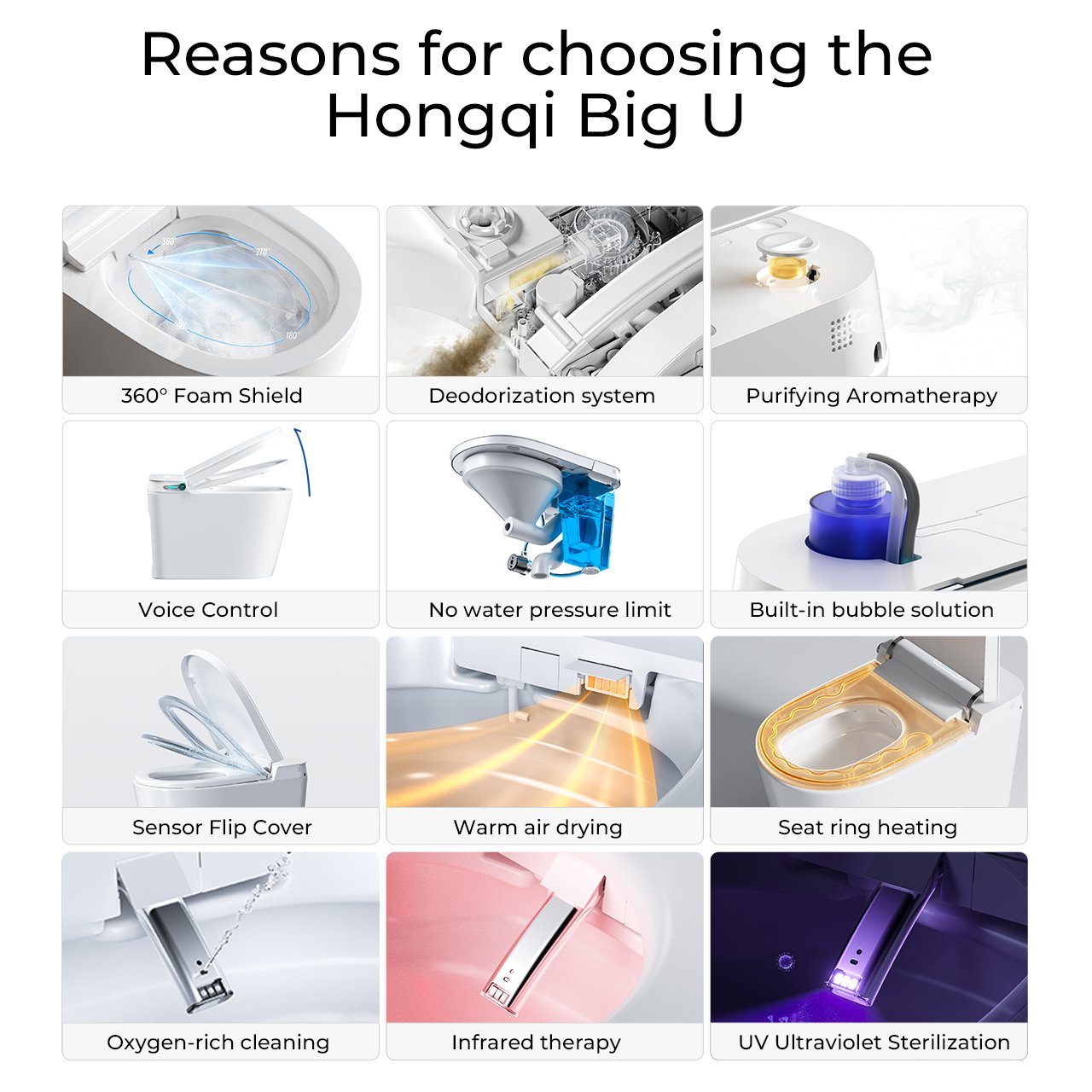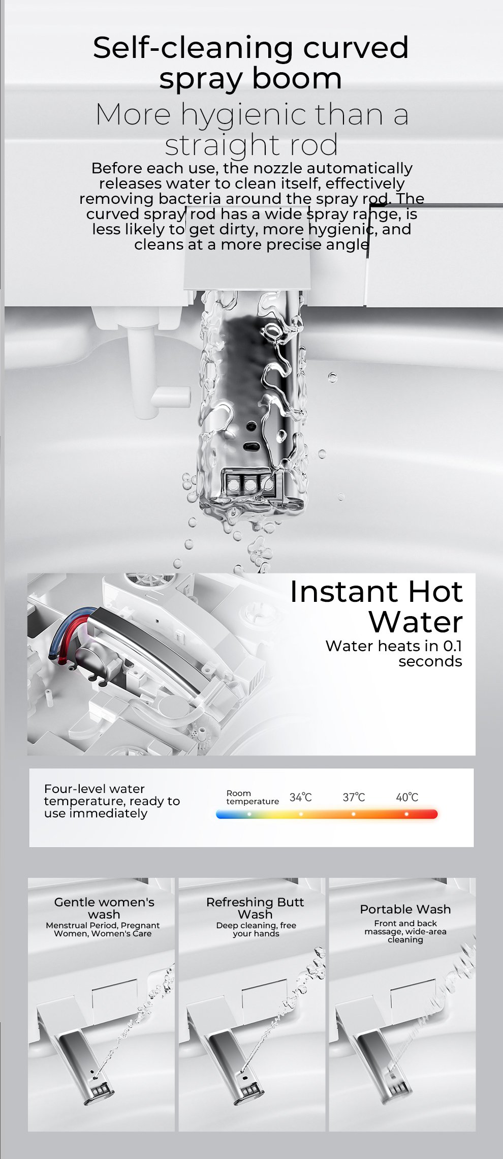 Built-in aromatherapy, built-in bubbles, and temperature sensing for all seasons