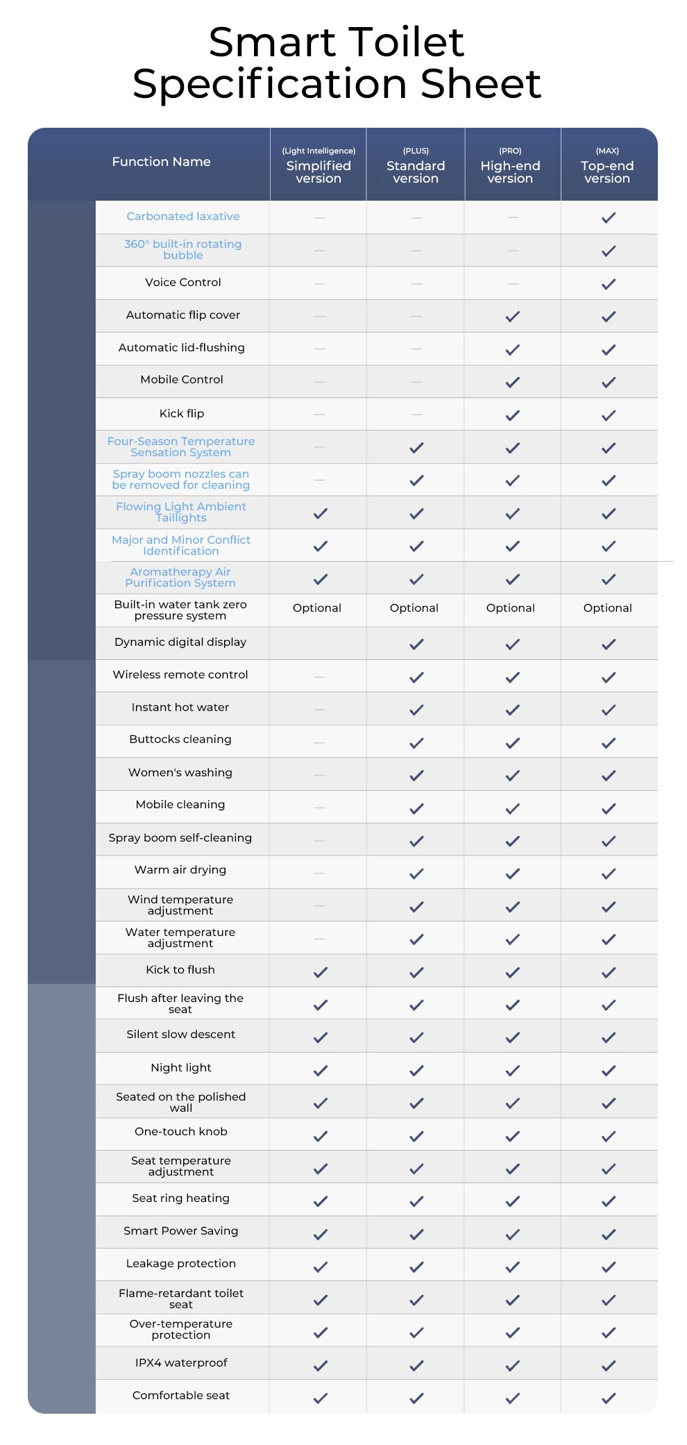Basic configuration, High-end configuration, Standard configuration, Top configuration
