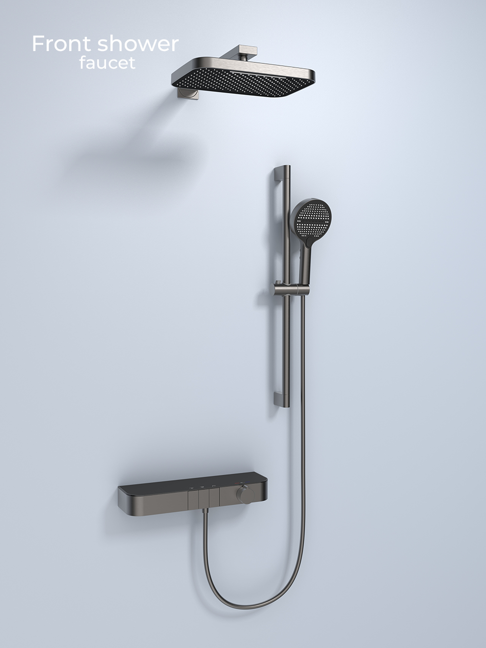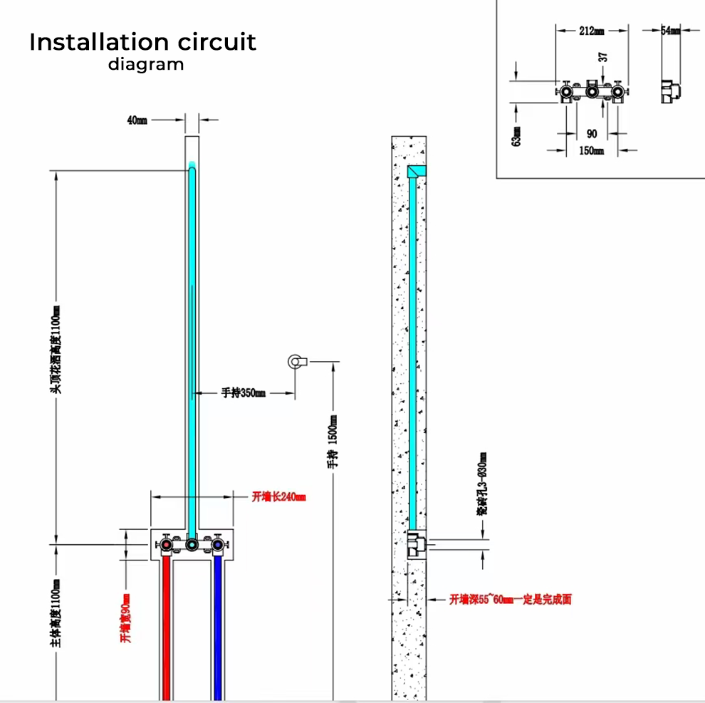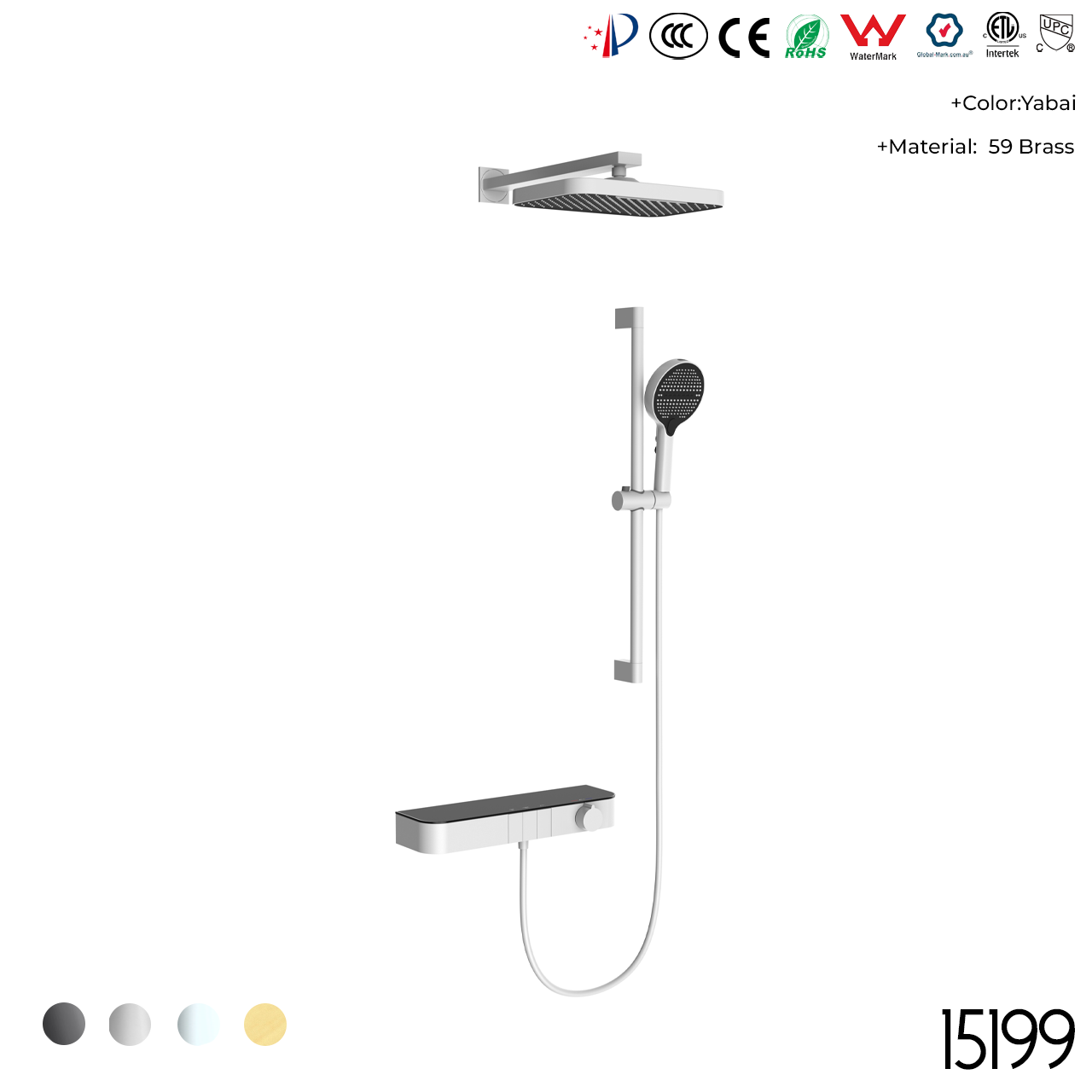 304 stainless steel shell / 59 copper forged in one piece / all-copper thermostatic valve core / ceramic piano valve core / tempered glass + temperature display + ambient lighting / PPR embedded body