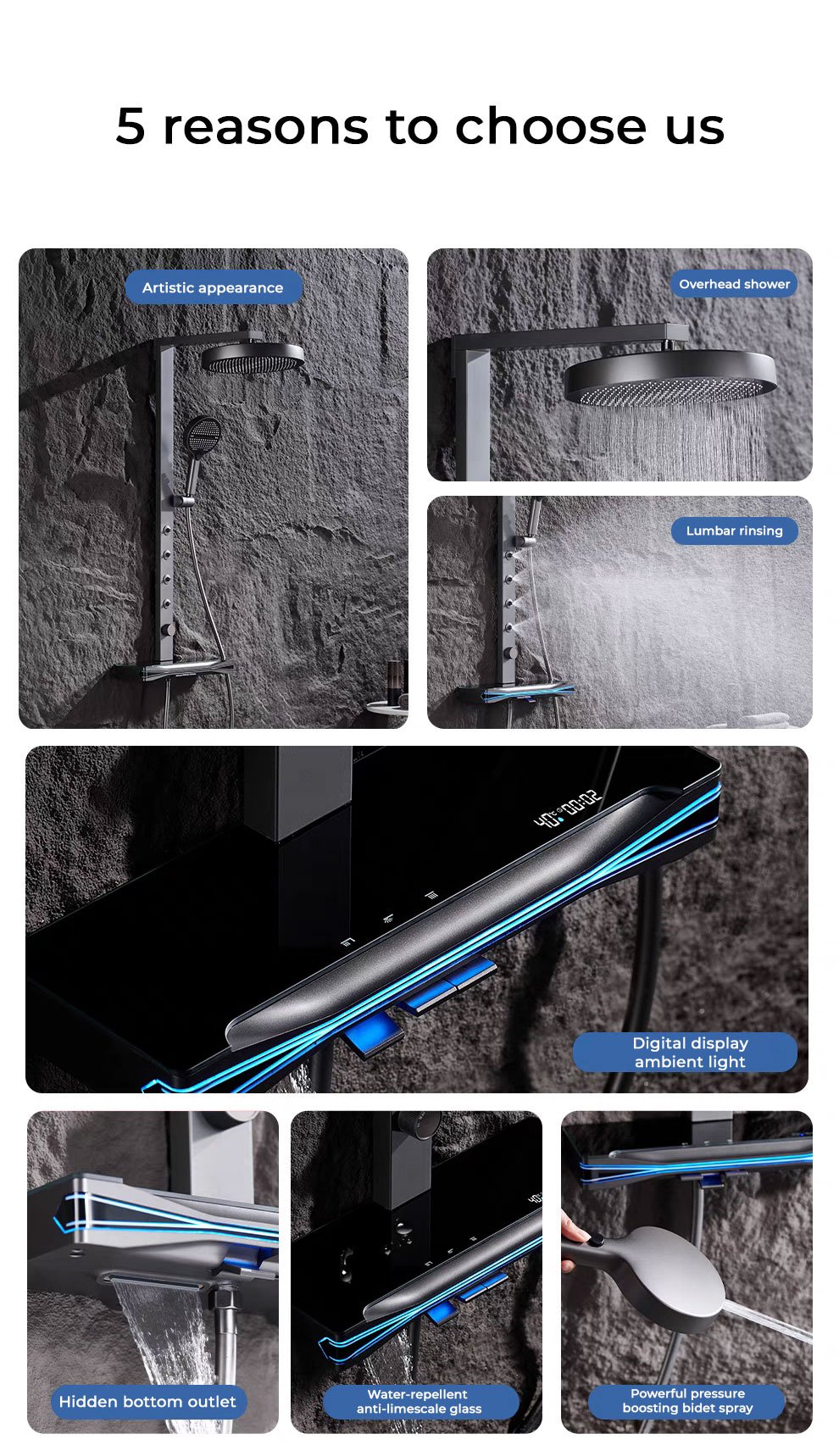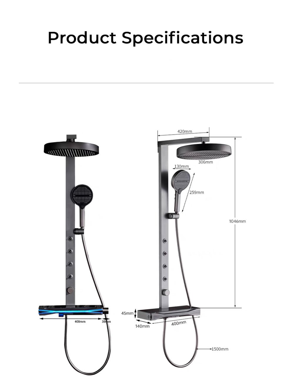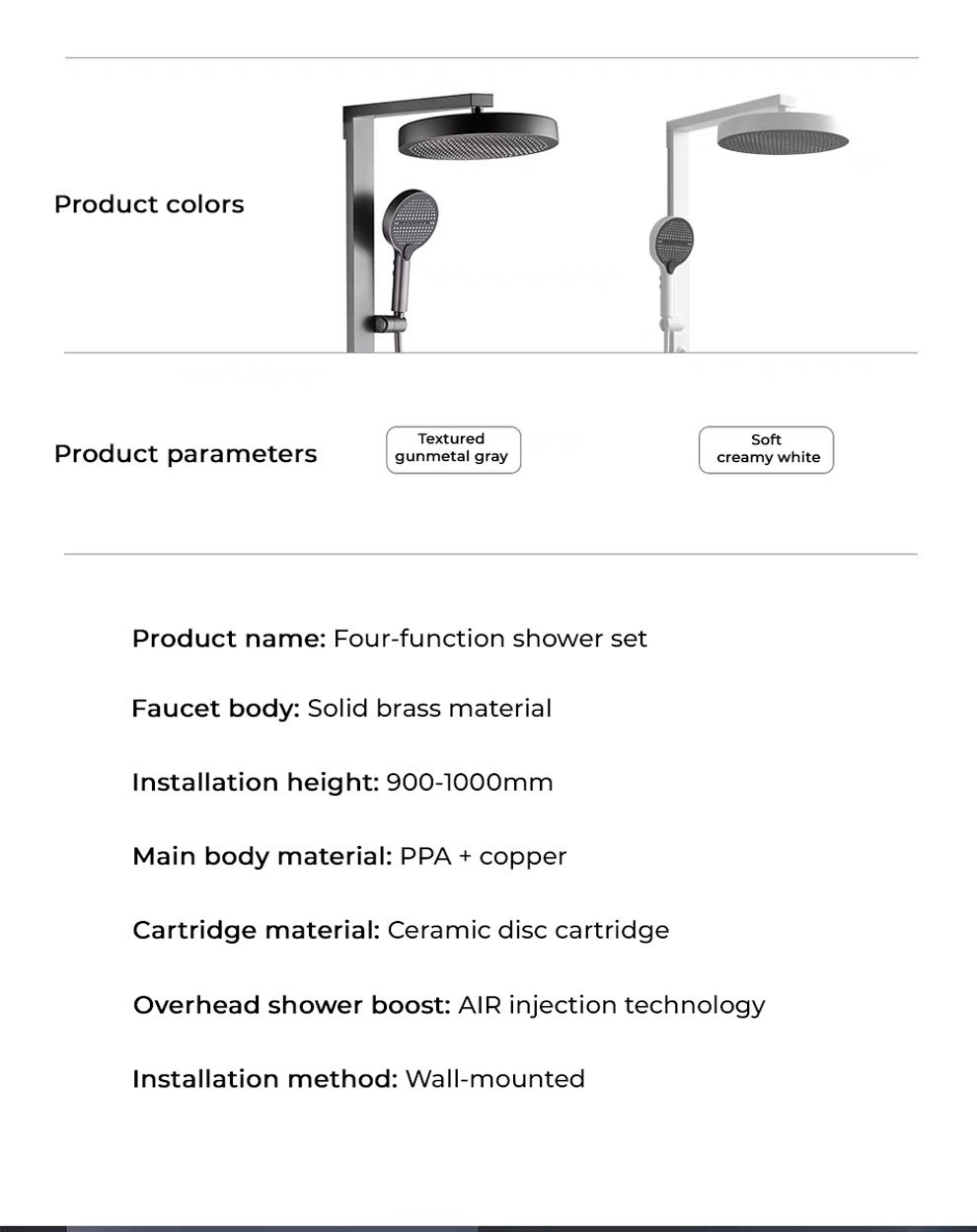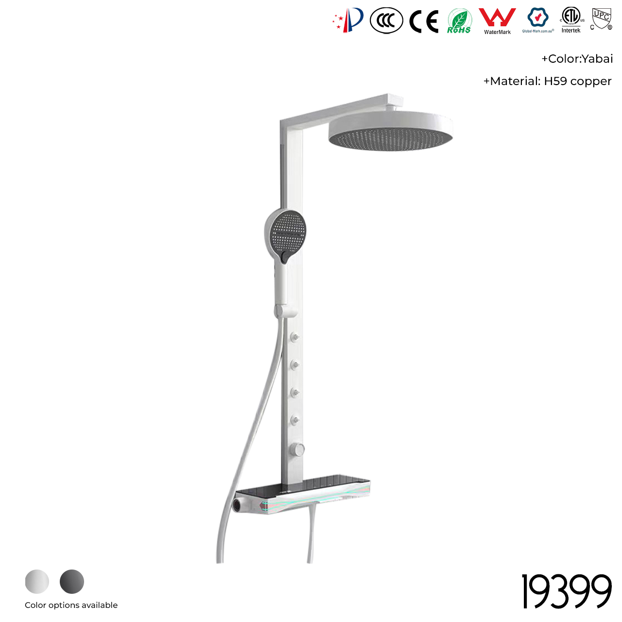 Material: ABS shell/copper waterway