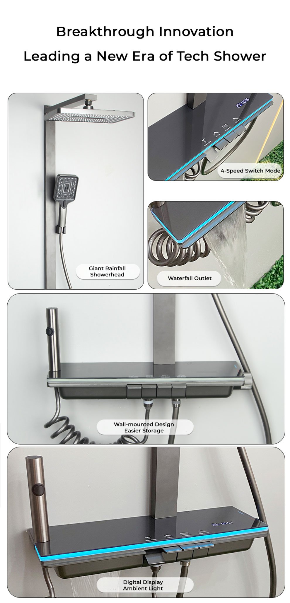 19901 Four Function Digital Atmosphere Light Shower Head
