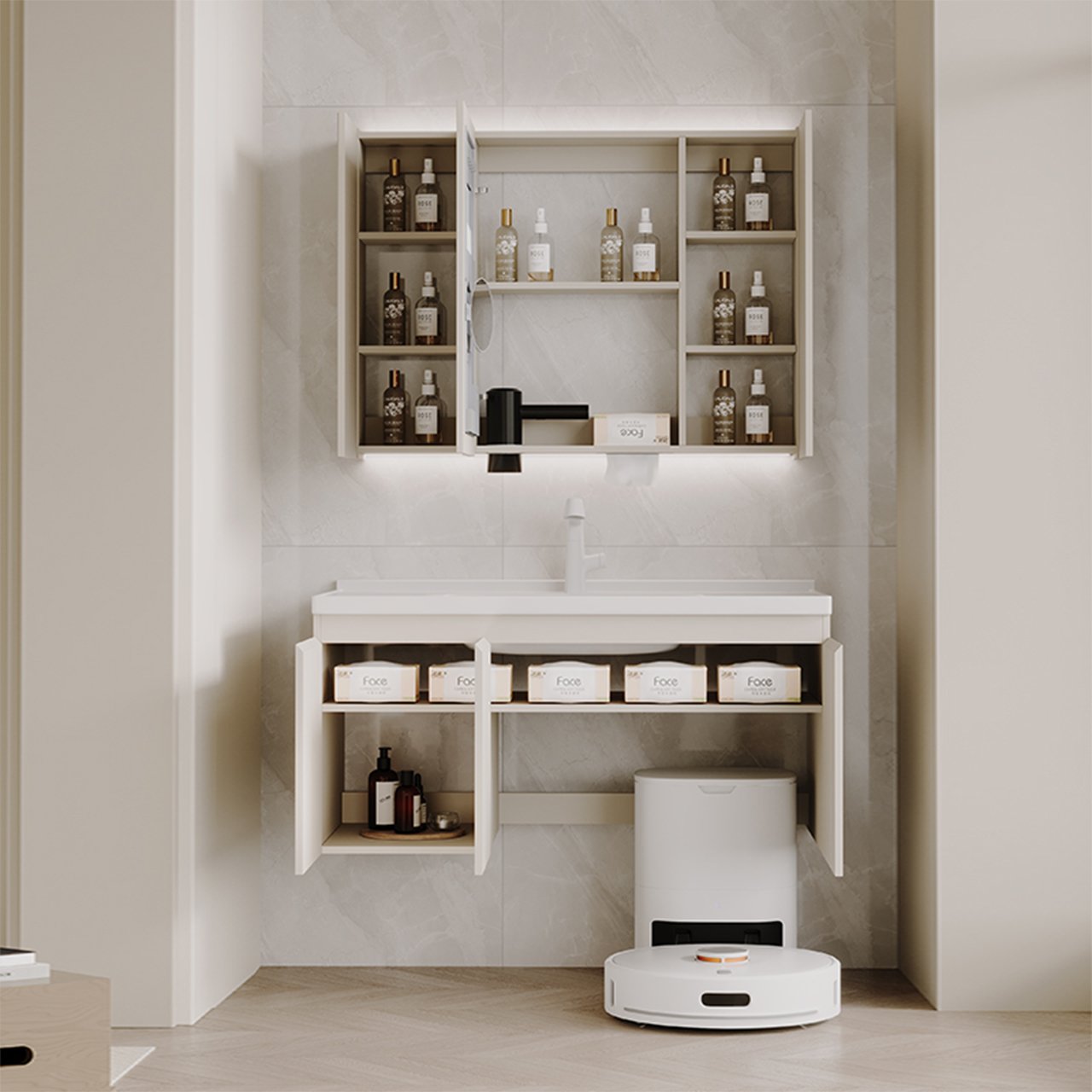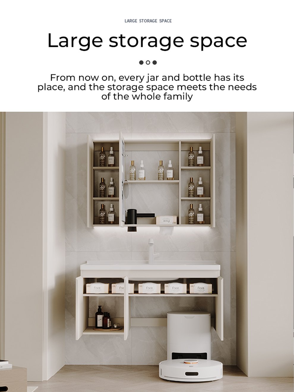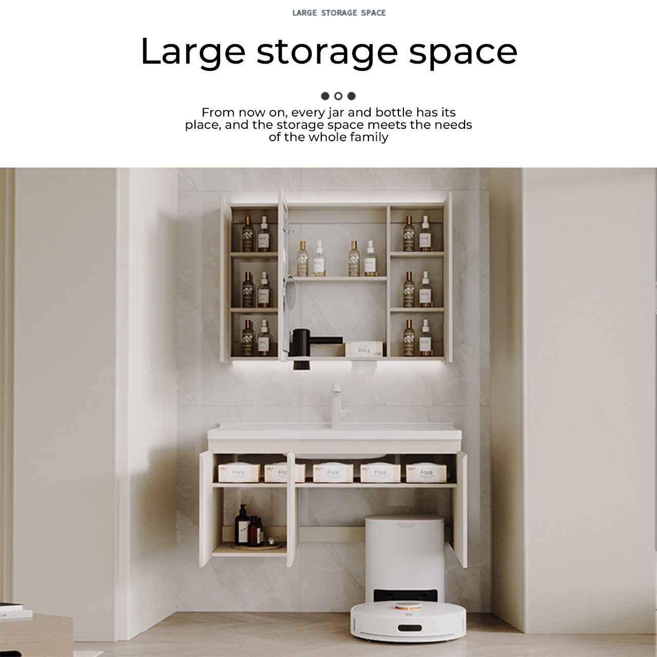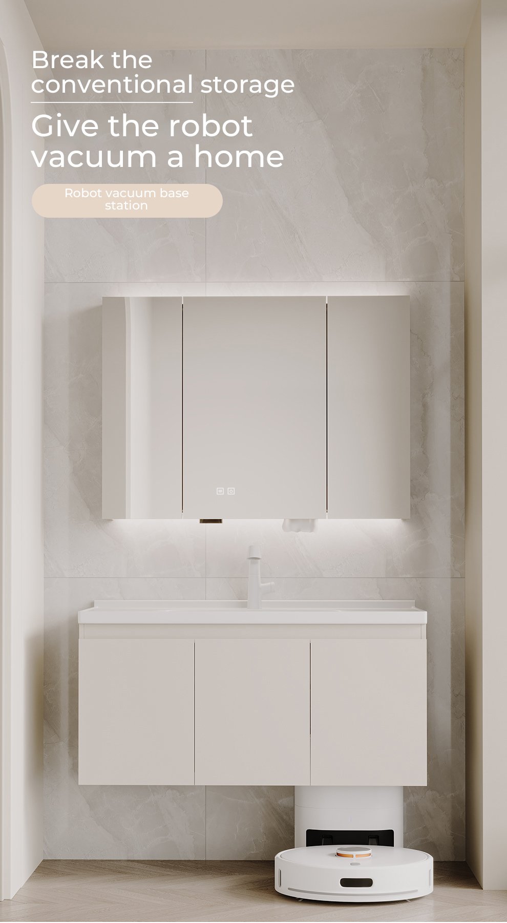 bathroom cabinet compatible with sweeping robots, no customization required