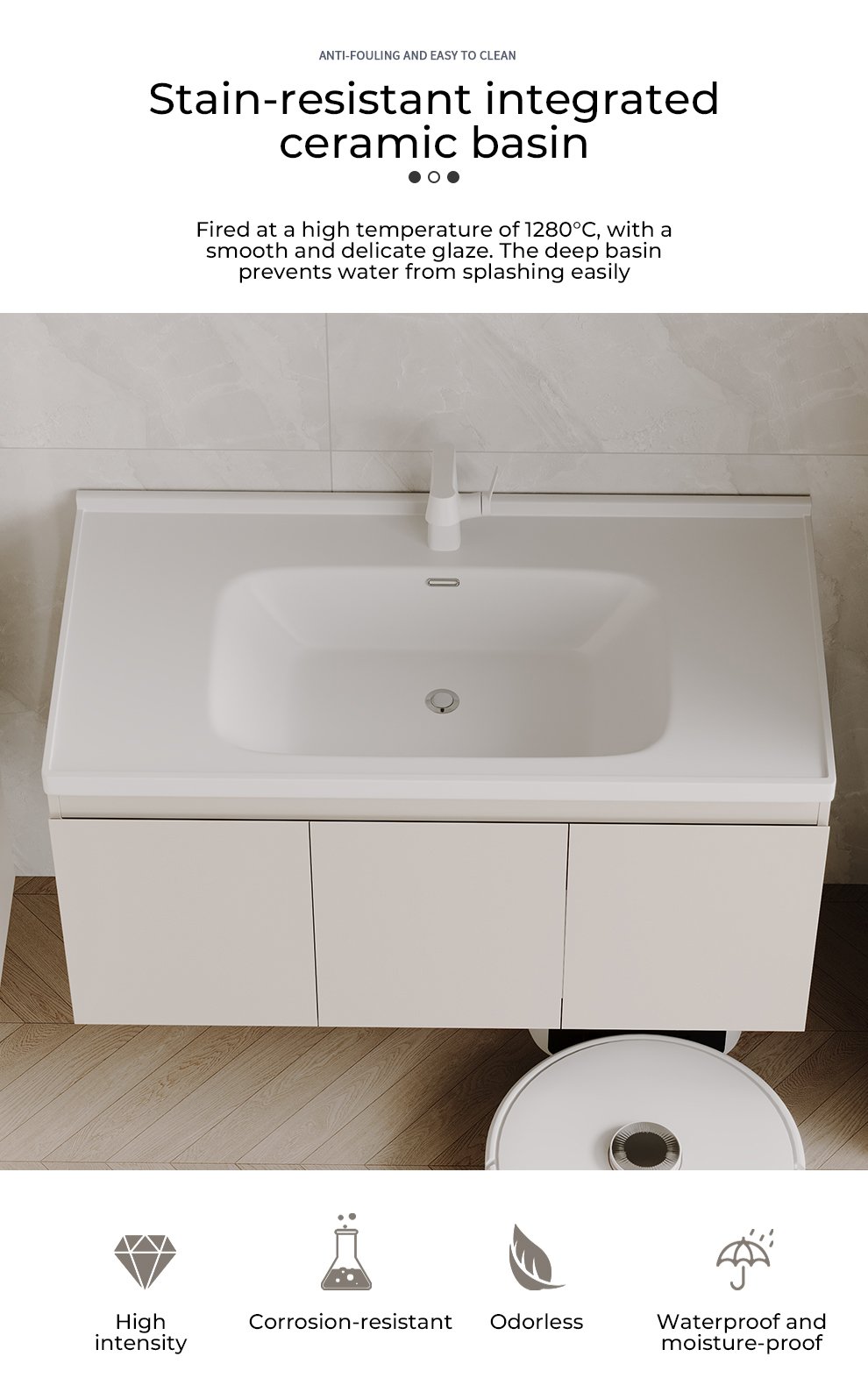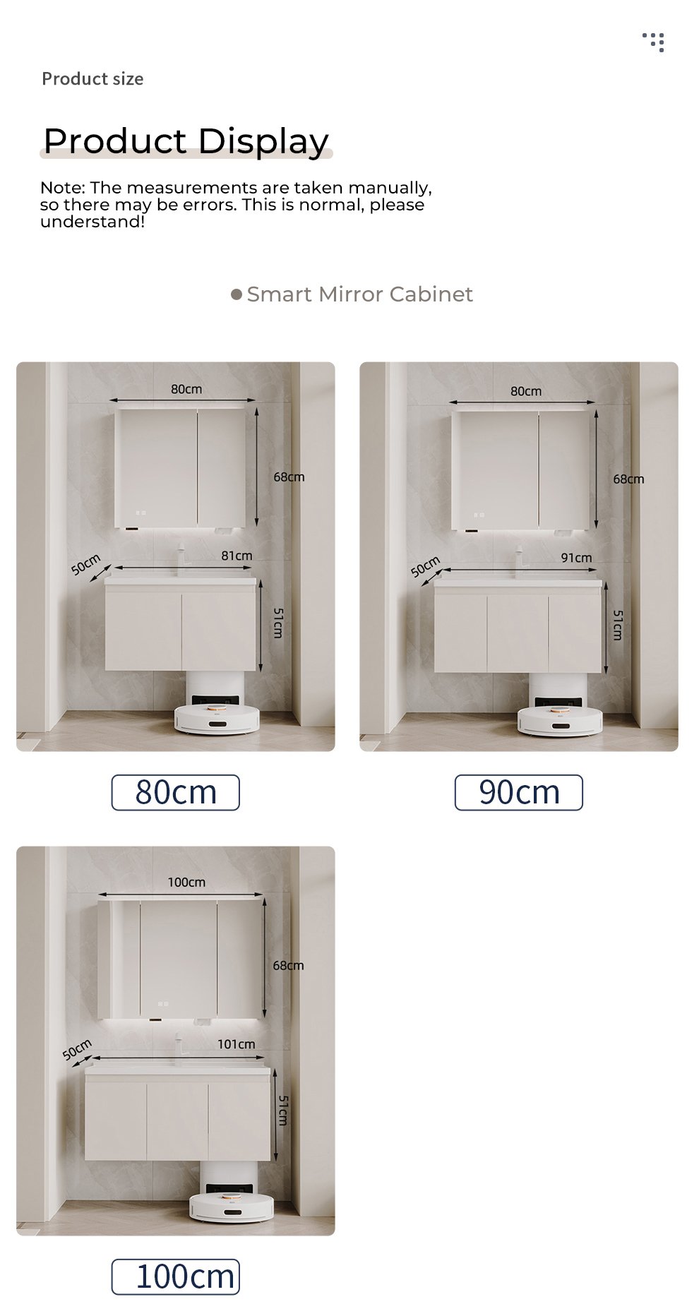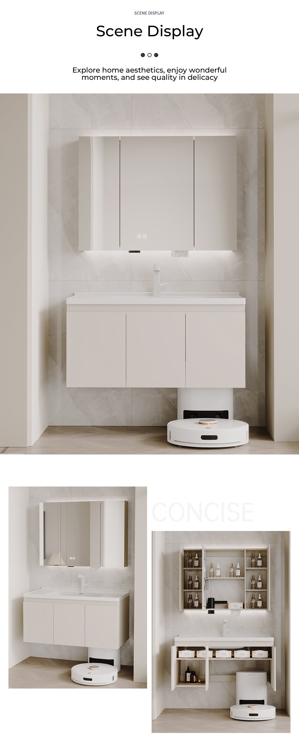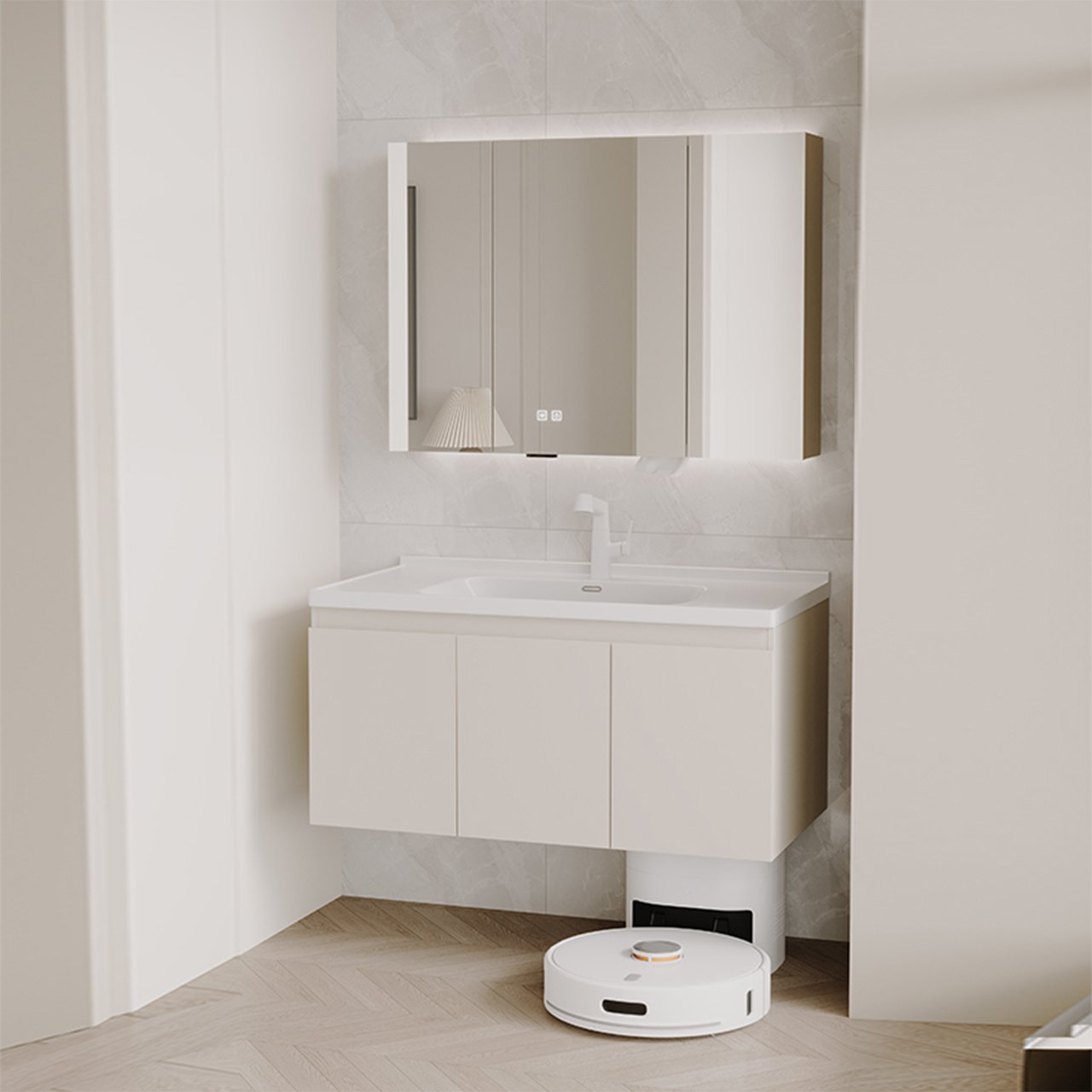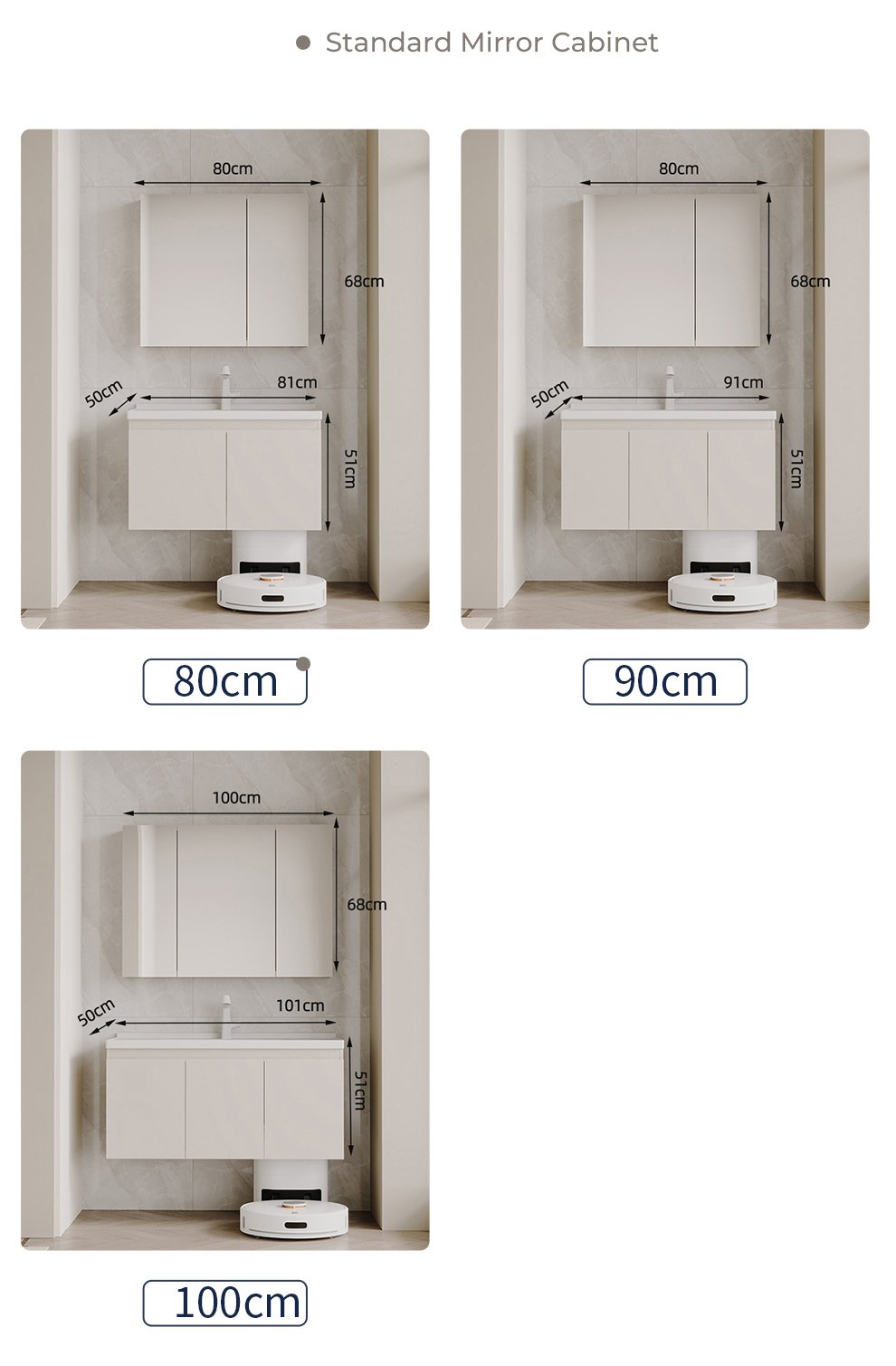 bathroom cabinet compatible with sweeping robots, no customization required