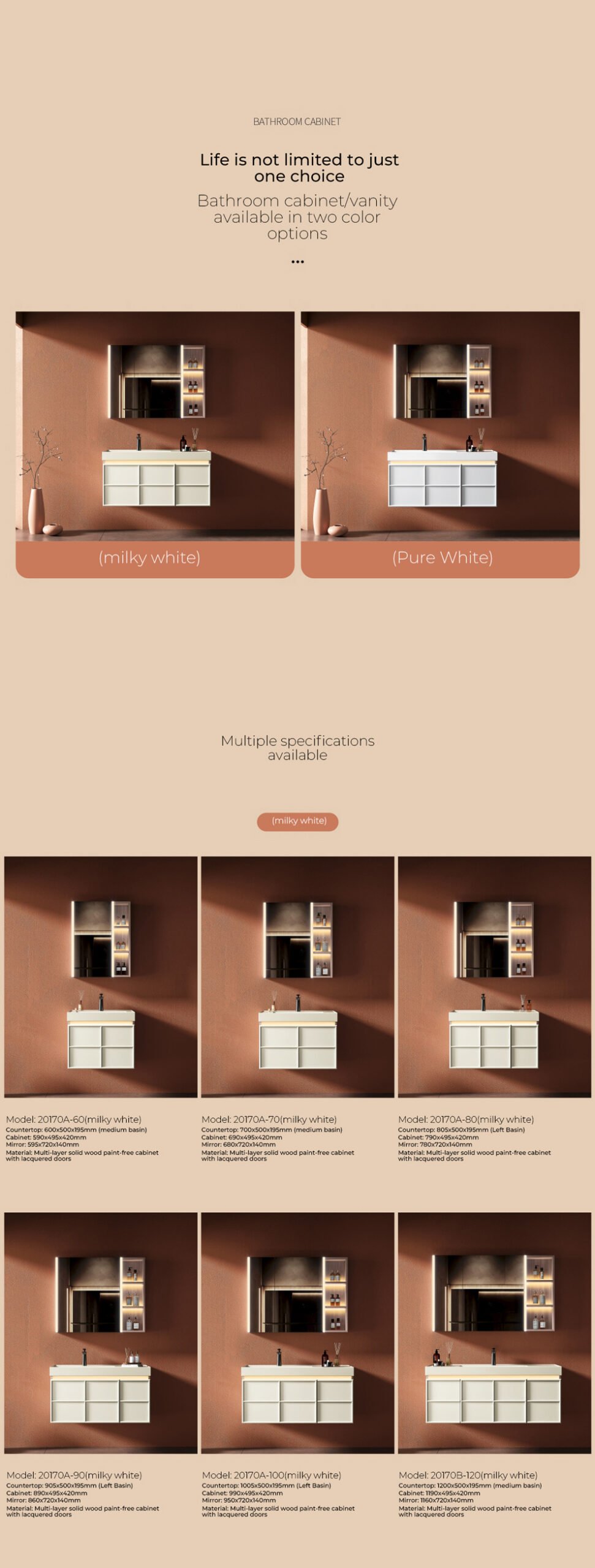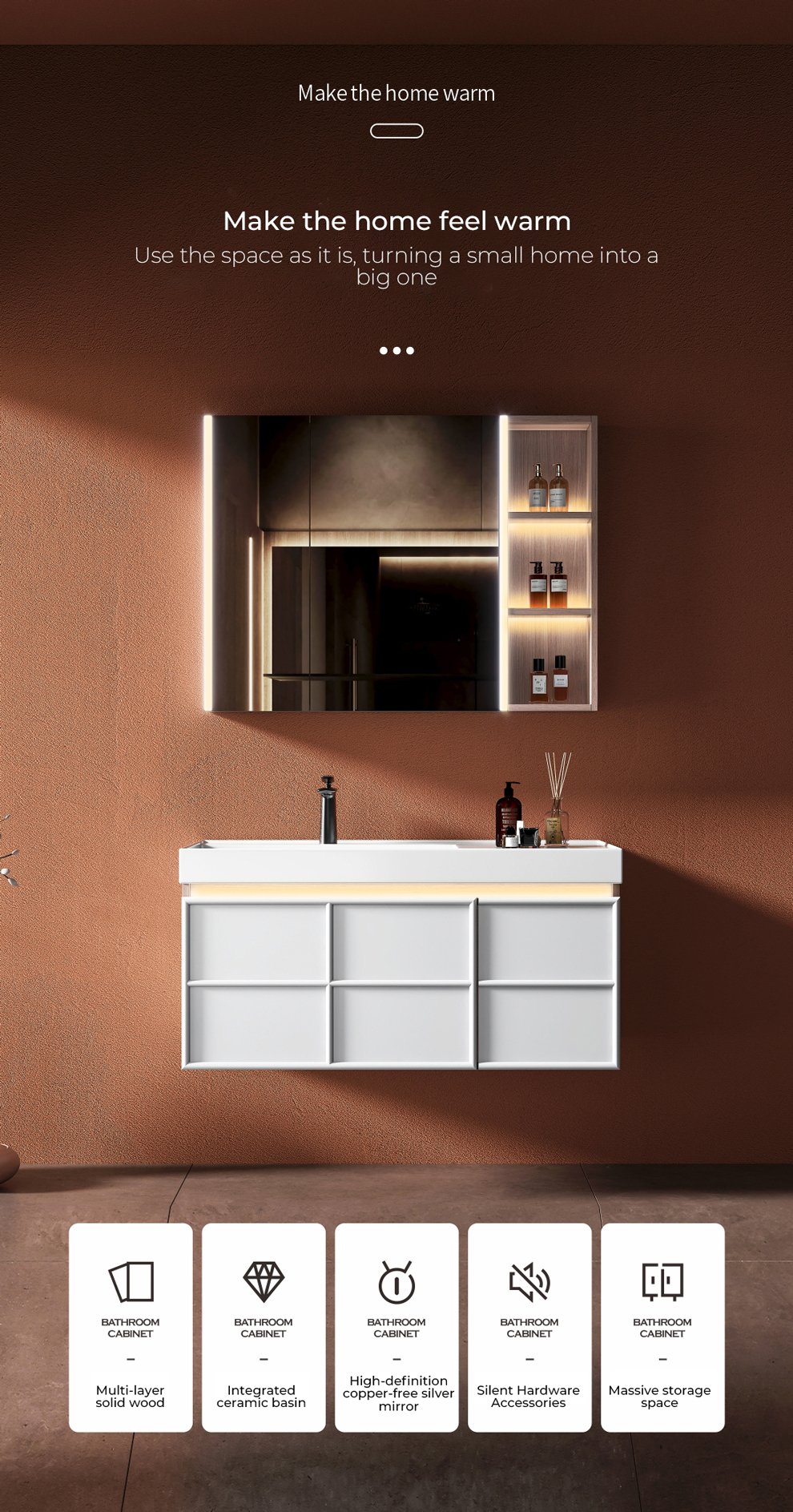Cabinet body: featuring a basswood walnut grain finish and a creamy white painted door panel, equipped with an induction light