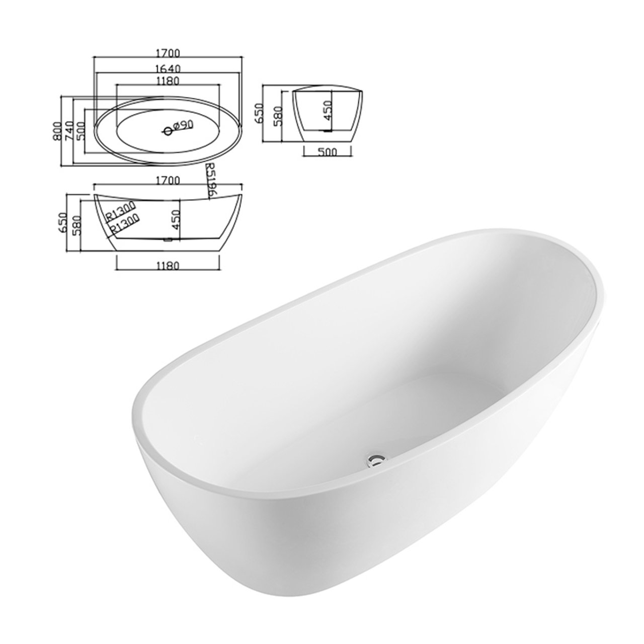 acrylic bathtub Color: glossy white/matte white