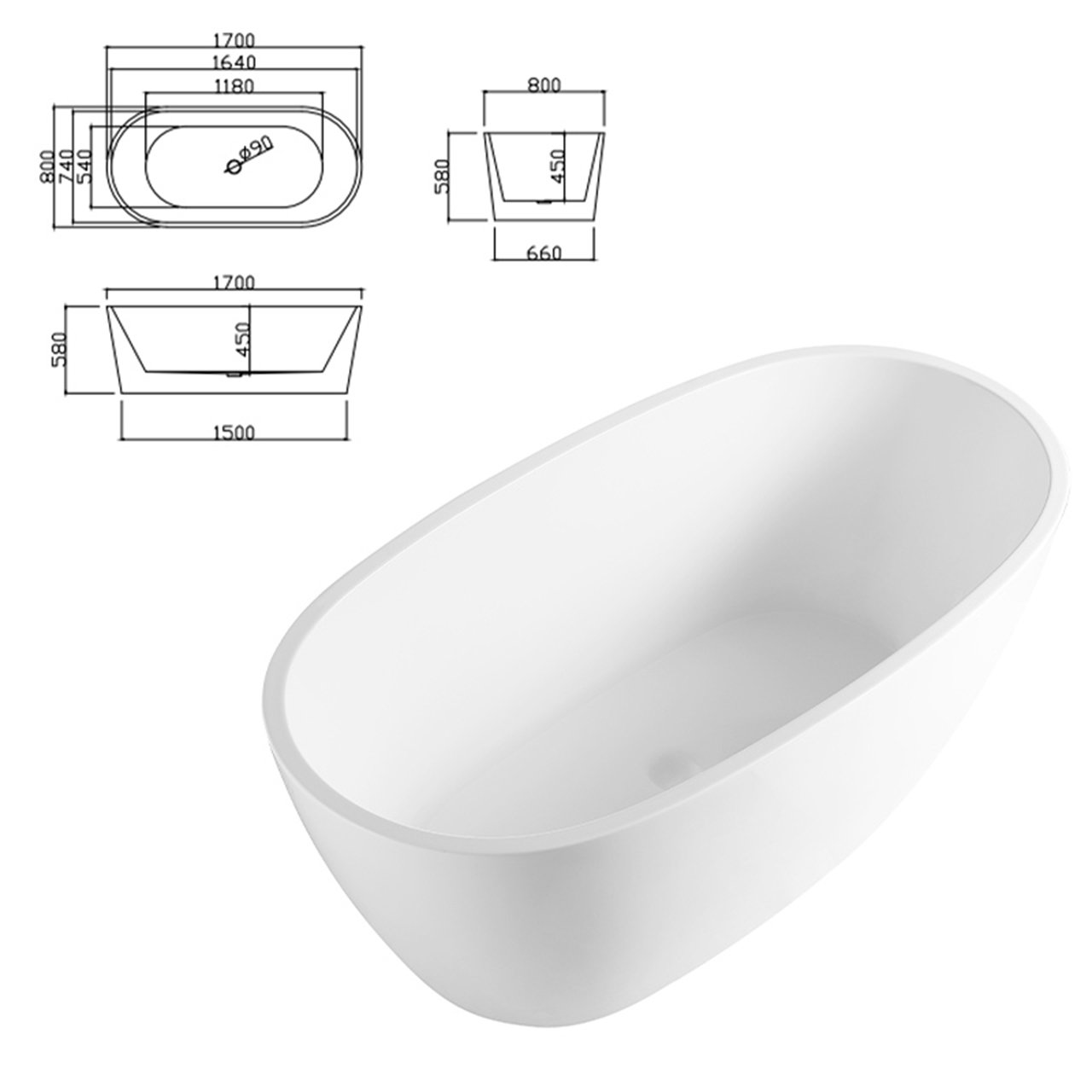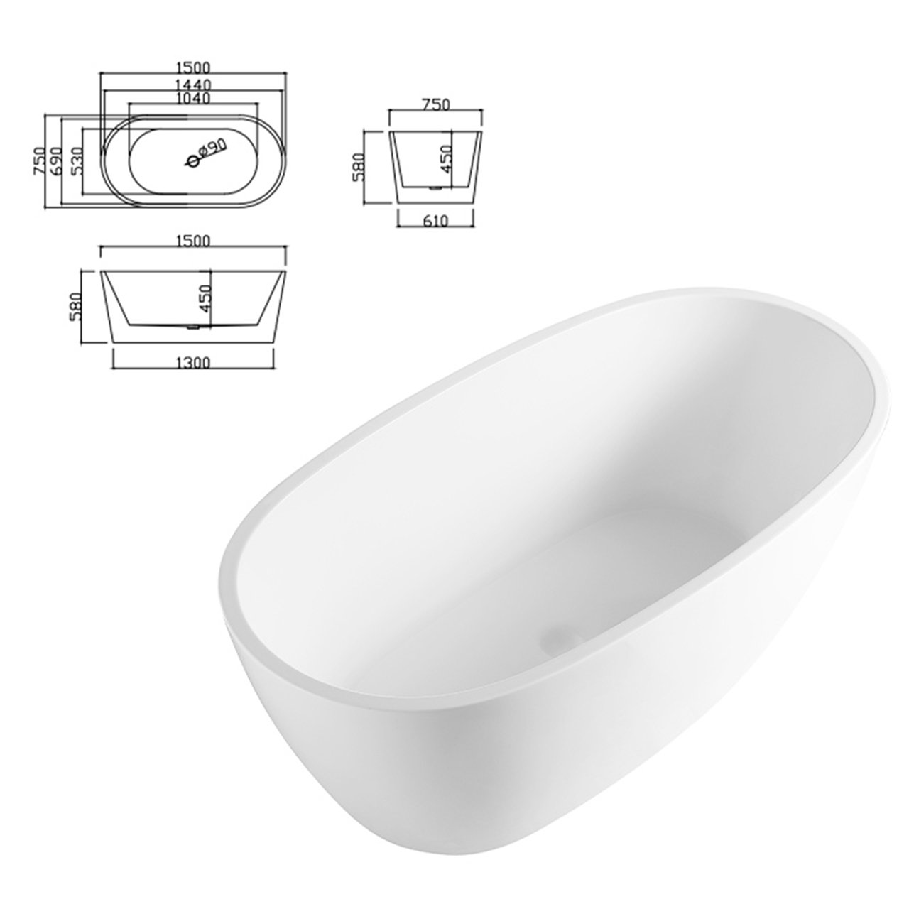 acrylic bathtub Color: glossy white/matte white