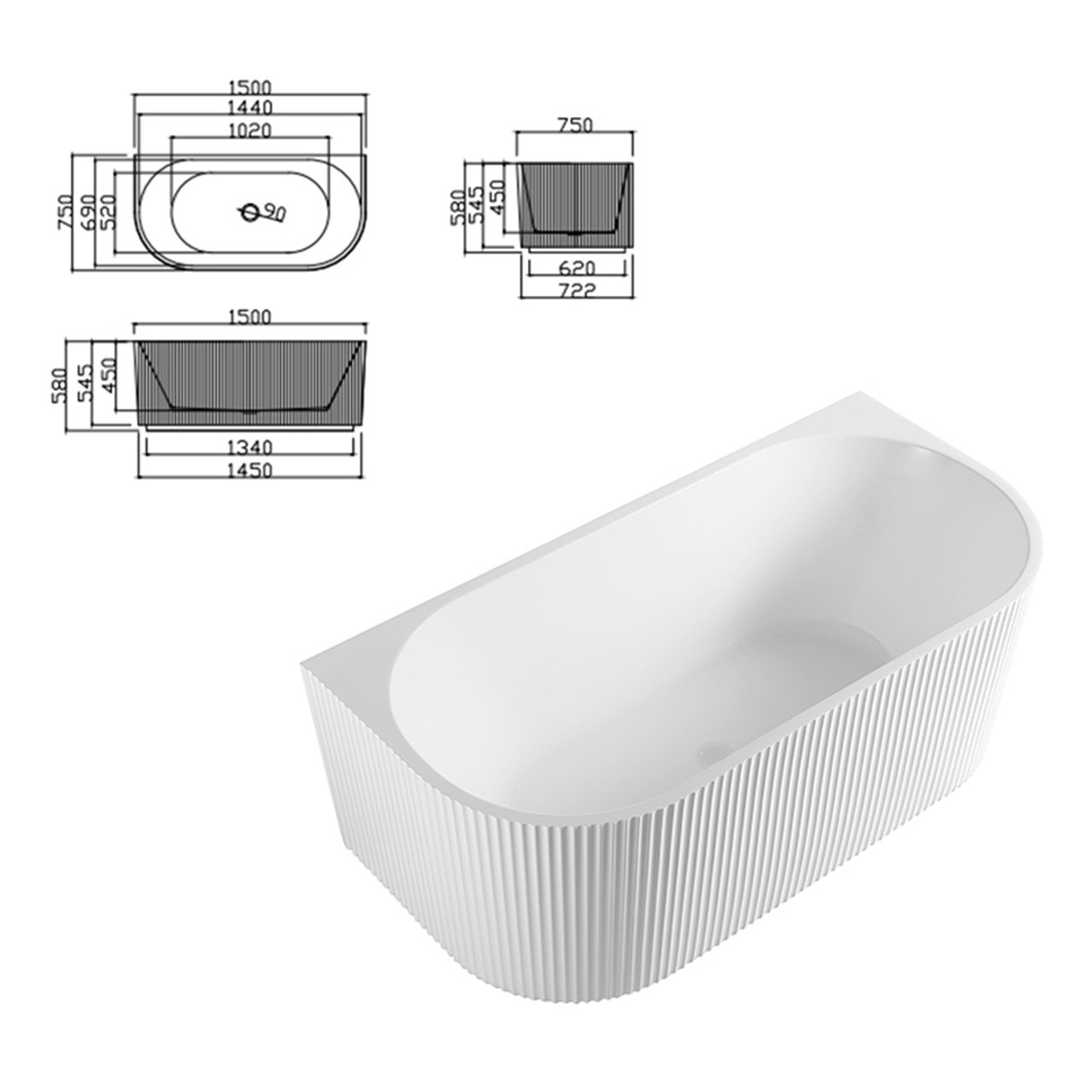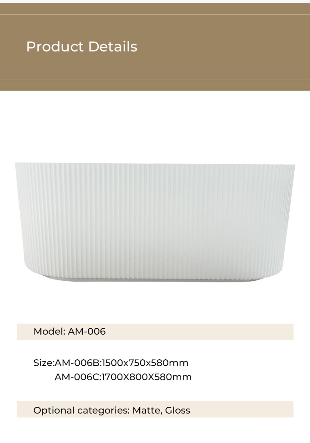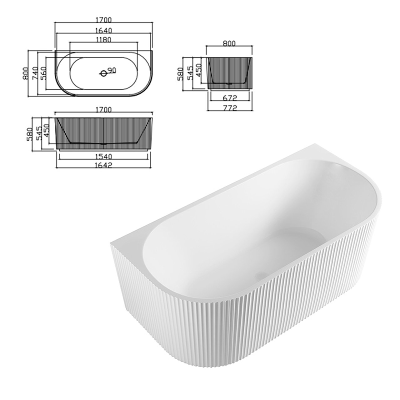 Bright white 150cm, Bright white 170cm, Matte white 150cm, Matte white 170cm